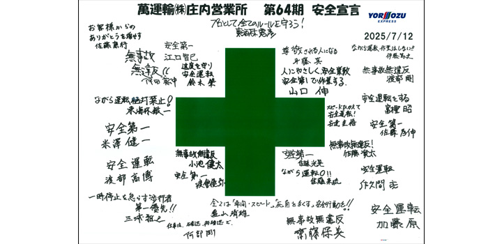今期の安全目標を全員直筆で記入して、事故の無いように誓いました。