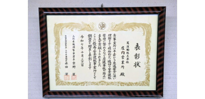 表彰状 庄内営業所 | 2026.01.09 自動車安全運転センターから「銅賞」を受賞いたしました! 日頃からの努力の賜物(^^♪ 次は「銀賞」「金賞」を目指してさらなる交通安全意識の向上に努め、交通事故防止につながる活動を継続してまいります。